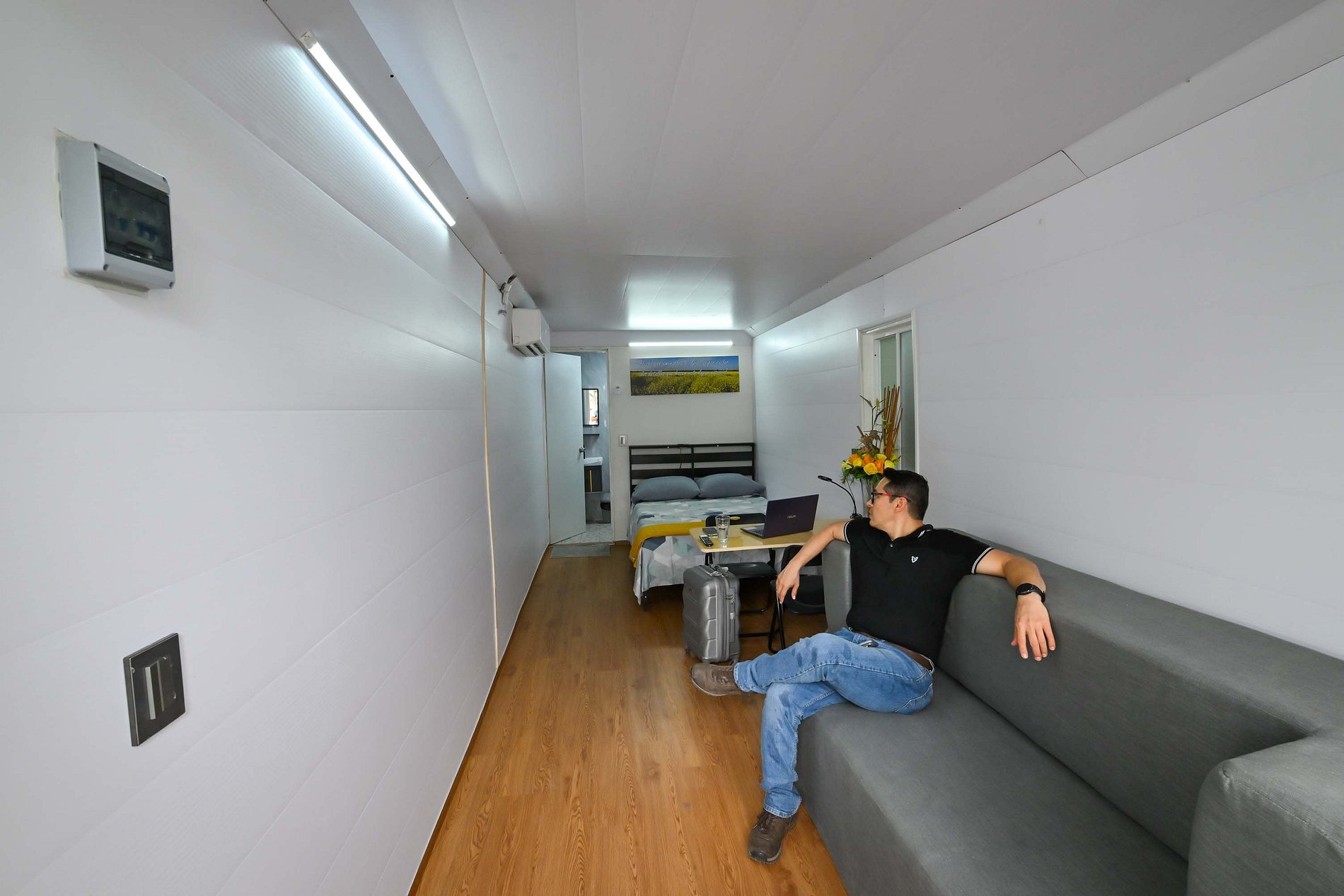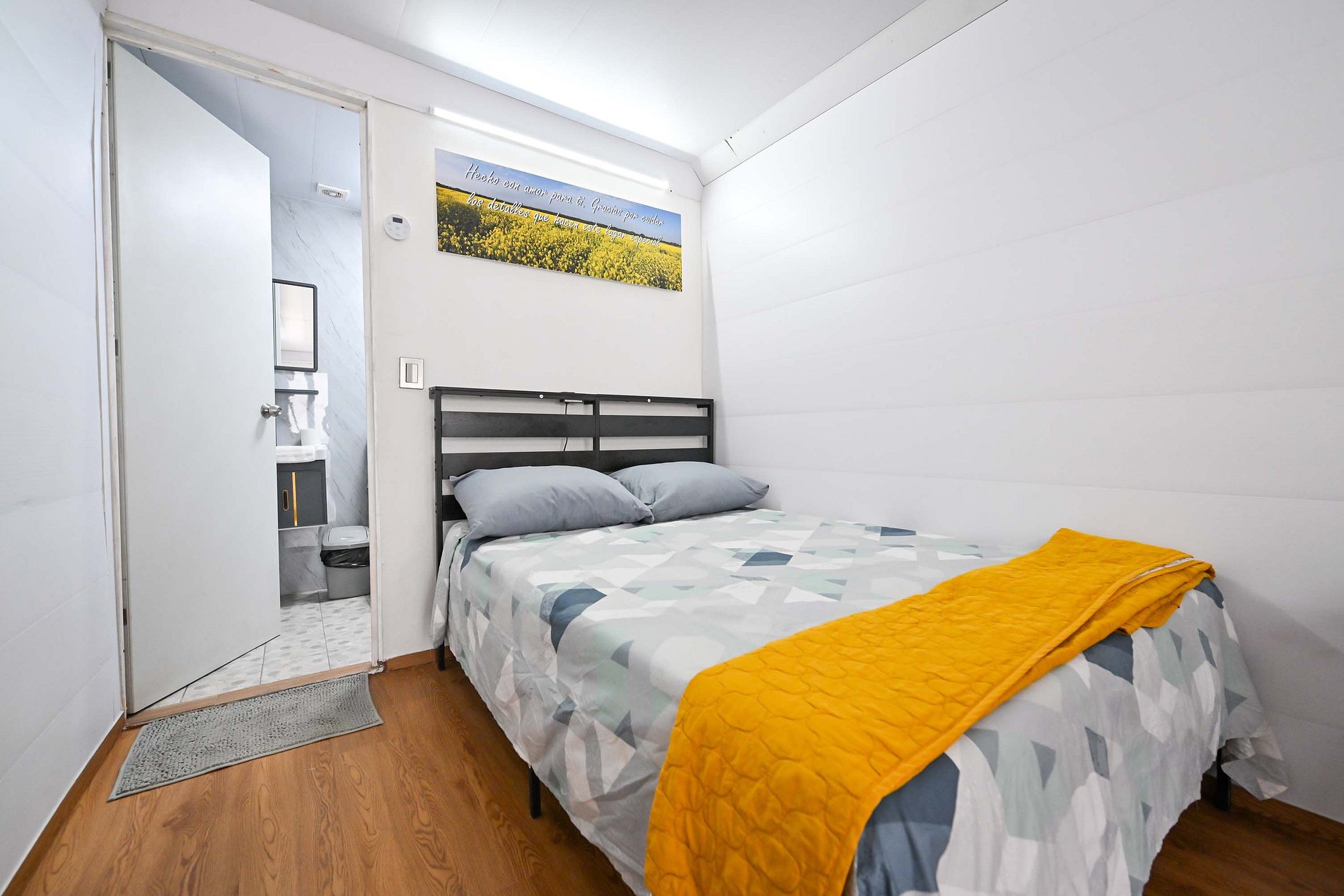 vive una experiencia diferente en una habitacion moderna dentro de un contenedor maritimo, cuenta con cama matrimonial, sofa cama, tv 40", mesa detrabajo ,internet, baño privado con agua caliente